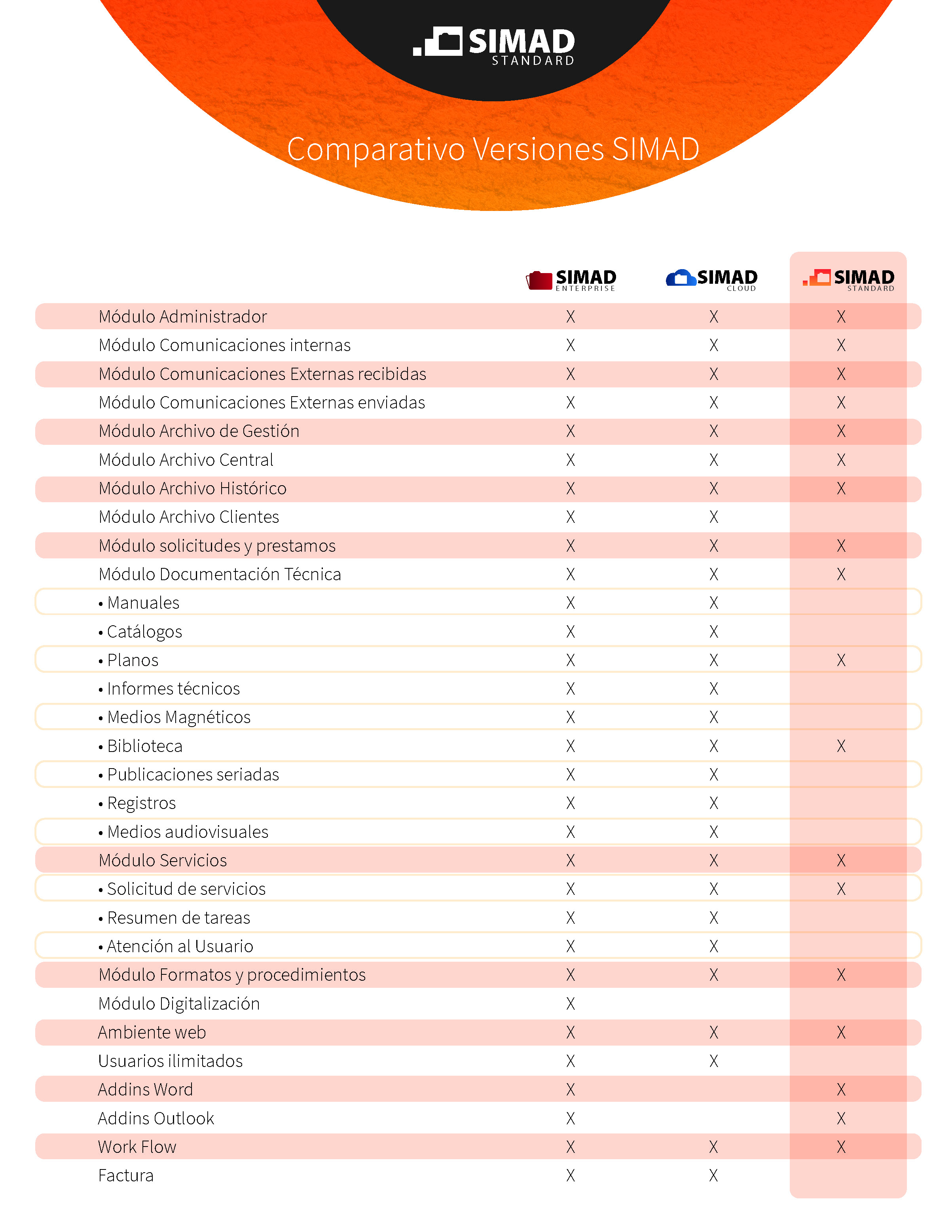COMPARATIVO VERSIONES SIMAD